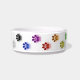 This is a heavy, durable bowl decorated with Tibbies of many colors, the perfect size for hungry/thirsty Tibs. The design is interesting and printing clear.