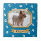 Pet lovers will cherish this paw print design pet frame with their favourite four legged friend's photo. Simply add a favourite pet photo and name and you have the perfect keepsake. Tile has a white paw print pattern with blue background.