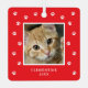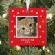 Celebrate your furry friend this holiday with the cute Paw Print Pet Photo Christmas Metal Ornament. Designed with a festive red background and white paw prints scattered merrily around a photo of your pet, this ornament will be a fun keepsake for pet lovers. Add your pet's photo, name and year to create a treasured Christmas tree ornament that highlights your beloved cat or dog companion.