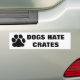 Show your belief that dogs are family members and that “dogs hate crates” with this bumper sticker featuring a paw print and the “Dogs Hate Crates” slogan. Many proud pet parents raise awesome dogs free in their homes. And they don’t want anyone in the pet industry telling them to lock their dogs in a small wire cage or crate!