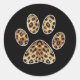 Paw Print with Gold & Black Leopard Sparkle Classic Round Sticker