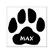 Minimalist personalised paw print self inking stamp with name. Personalise by replacing the sample name Max with a custom name or leave as is if Max is meaningful to you. Use in crafting projects, correspondence or in journal and other crafty creations. Other creative uses include pet signature and a symbol of your pet's seal of approval.
