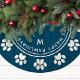 Paw Print Wreath Monogram Pet Navy Christmas Brushed Polyester Tree Skirt. The perfect tree skirt for pet owners who love to include their pets in the holiday festivities. Personalise this custom design with your own text and monogram initial.