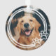 Custom pet ornament for dog (or cat) lovers features a photo of your furry friend on the front and back with a cute and modern round frame of paw prints and hearts. Simply upload a favourite photo of your pet to make this your own!
