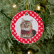 Personalised cat name and photo paw prints pattern Christmas Tree Ornament - Red.