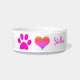 Paw Prints Cute Heart Monograms Pink White Ombre Bowl