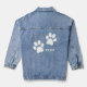 Paw Prints Design on the back of this Denim Jacket with customisable text to change or delete.. Select your appropriate size from the drop-down menu.
