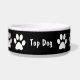 Paw prints large dog bowl with white paws and black background and a the dog saying "top dog" you can replace with your dogs name making this a classy pet bowl design. Use yours for a water dish, food dish, or catchall for all your doggy treats.