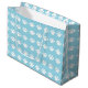 This gift bag displays a pattern of white paw prints on a blue background. This is a great item for paw print themed, dog themed, cat themed, or animal themed baby showers.