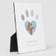 Cherish the wonderful memories forever with our custom pet paw prints photo memorial white pet photo plaque. Our design features a heart shape pet paw print photo frame to display your special pet photo. Customise with the pet's name and personal message.