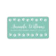 Cute return address labels featuring a border of white paw prints top and bottom on a pastel green background. Customisable template fields for your name and address.