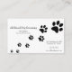 A trail of dog paw prints leads from the bottom left corner to the upper right corner on this business card for a dog groomer. Easily adaptable to a variety of pet-related businesses. Very sharp and professional-looking!