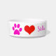 Paw Prints Red Heart Cute Monograms Pink White Bowl