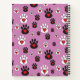 Show how much you love your fur baby with this pawprint design! It has black and white paws with red hearts on a pink background.