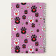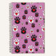 Paw prints with red hearts on pink notebook