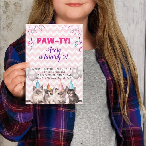 Paw-ty Kittens Kids Birthday Party invitations
