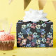 Black background with multiple coloured and sized pet pawprints everywhere. Art by Melissa J Barrett