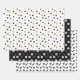 Mixed dog themed patterned wrapping paper sheets with three different but matching dog patterns with paw prints, dog bones, and balls in black and white seamless patterns. Great for pet birthdays or pet Christmas gifts!