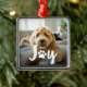 Adorable paw print typography design that says the word "Joy". Personalise this christmas ornament with your pet's photo, name and year.