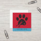 Modern pet groomer business cards in a unique square format feature your name or company name accented with groomers scissors, little red heart and dog paws on editable pastel pink background. Add your full contact information to the back in black on white background. A unique and modern choice for pet groomers, pet grooming salon, dog groomer or any business with a pet grooming in focus.