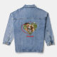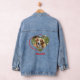 Express your love for dogs with this heartfelt denim jacket. The adorable design of a dog inside two hearts is sure to turn heads.