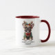 Pawsitively Merry French Bulldog Frenchie Christmas Coffee Mug features a cute dachshund dog wearing antlers with Christmas gifts and the text "Pawsitively Merry" in modern script typography. Perfect for Christmas and the holidays as gifts for family and friends, dog lovers, dog mum, dog dad, dog sitter and more. Personalise by editing the text in the text box provided. Created by Evco Studio www.zazzle.com/store/evcostudio