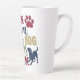 A colorful, text-based graphic on a black background featuring the motivational quote 'Be the Person Your Dog Thinks You Are,' decorated with hearts, a paw print, and a blue dog silhouette.