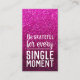 Spread kindness with this gorgeous “Pay It Forward” business card. The front features hot pink magenta faux glitter and inspiring white text: “be grateful for every single moment.” The back shares a message of compassion and encouragement in matching raspberry colored script and block fonts. A beautiful way to pass on kindness and inspire gratitude in your community.