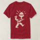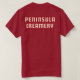 PC Man logo on chest in cream with PC text on back in cream w/ red outline. Looks best on dark apparel.