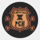 PCH highway sign design with shield & crossbones, skull & crossbones, text and thorns. Red, orange & black, on t-shirts, sweats & gift swag.
