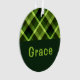 Pea Green Plaid Monogram Circle Acrylic Ornament