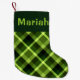 A small monogrammed Christmas stocking featuring a beautiful diagonal plaid pattern design in pea green. Create the perfect customised gift by clicking the “personalised” button to add a name or custom message in the provided template field. Select the “click to customise further” link to change the font, text size and more.