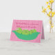 Twin sweet little baby girl peas sit nestled into an open pea pod on top of a striped pink background. Pink bows, eyelashes, blushing cheeks and one with a tooth make them especially adorable. The cover text says: "We heard there is a few new little sprouts in the garden" and the inside text reads: "Congratulations on your new triplet baby girls!" Customisable! Don't like the background colour inside the card, font style, or font colour? Click on the "Customise It" button to change. The striped background is also removable. Check out our other Pea Pod Pals, and New Baby products too. Want this design on something else? Just ask!