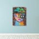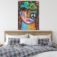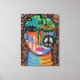 My colourful abstract acrylic painting on OSB of a woman with a peace sign on her cheek printed on wrapped canvas