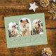 Wish your friends and family a merry christmas with these modern, arched 3 photo christmas cards. Featuring a sage green backgound, script which reads 'PEACE AND LOVE', your favorite family photo's in the shape of arches and personalized with a greeting message your family name and the year.