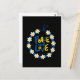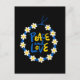 Show your support for Ukraine with this modern postcard design featuring a white flower wreath that has "Peace and Love" text in blue and yellow Ukraine flag colours on black background.