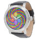 A very colourful design! The universal sign for peace is dead centre on this watch face with rainbows spiralling out from it. A flower design in various colours also surrounds the peace symbol. Available in all styles and colours.
