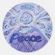 The word for "Peace", is painted in shades lavender with purple, blue, and gold accents. A dove floats above the word peace and there are multiple hearts on the angel. The acrylic painting has a textural contrast and sparkle from a light layer of glitter. Customise this inspirational word sticker with your own words to make special guardian angel decals for events!