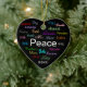 The Peace Around the World in Black Ceramic Heart Ornament is a unique and lovely gift for friends and family! With elegant typography displayed against a classic black background this modern decoration will complement any home decor, while expressing the hopeful message of peace in different languages from all over the world! Enjoy the beauty of this decoration as it is designed, or easily personalise by changing text, fonts and background colours.
