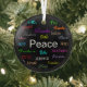 The Peace Around the World in Black Glass Circle Ornament is a unique and lovely gift for friends and family! With elegant typography displayed against a classic black background this modern ornament will complement any home decor, while expressing the hopeful message of peace in different languages from all over the world! Enjoy the beauty of this decoration as it is, or easily personalise by changing text, fonts and background colours.