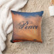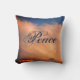 A beautiful blue sky and pink cloud photo is featured on this throw pillow and is complimented by the word peace which appears centred on this pillow. The solid dark blue colour on the back of this pillow can be changed and there is plenty of room to add text or photo as you desire.