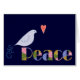 Peace. The key to a happy life is displayed in a colourful quilt design on this warm, charming, inspiring card. A peaceful pale blue dove and a simple red heart complete the design. Great way to let someone know you're thinking of them. Change the size of the card to meet your needs, or leave as shown. Enjoy!