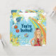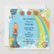 ~Personalised Peace Blonde Hippy Girl with Colourful Flowers, Peace Sign and Rainbow Background Birthday Party Invitations.