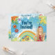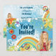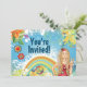 Personalised Peace Blonde Hippy Girl with Colourful Flowers, Peace Sign and Rainbow Background Birthday Party Invitations.