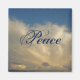 A beautiful blue sky and white cloud photo is featured on this refrigerator magnet and is complimented by the word peace which appears centred in this design. The word "Peace" appears in fancy script text in a dark blue colour. Both the word "Peace" and the font and colour may be customised if you desire.