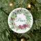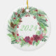Adorn your tree with the timeless beauty of this Christmas ornament featuring a delicate watercolor wreath of rose and purple Christmas blooms, nestled among sprigs of evergreen pine, pine cones, and vibrant red berries. This ornament captures the warmth and elegance of the season, blending soft floral tones with the rich textures of nature. Perfect for adding a touch of cosy sophistication to your holiday decor, it makes a wonderful gift or cherished addition to any ornament collection.