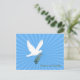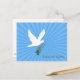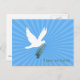 White dove with branch on radiant blue background sends a message of peace this holiday season.