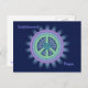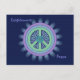 This postcard combines the ancient with the modern, to symbolise both enlightenment and the accompanying peace. The modern peace symbol and at the centre, the ancient symbol of the Lotus. All in varying hues of pastel blues, pinks, purple on a deeply blue background. If you associate these symbols with different virtues, or would like this card with no text, simply type in the boxes in the "personalise it" area.