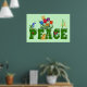 Flowers grow from the chipped and worn stone carved Peace to show that out of war and hate grows peace and tolerance if enough anti-war flowers spread their roots.