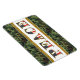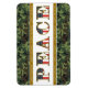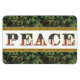 A Patriotic "Peace" military camo design Christmas magnet. A great addition to your holiday decor and supporting the troops! Also a nice stocking stuffer for family and friends, or for a special person who has, or is serving in the American armed forces/military. Features a digital artwork of a the word peace across the front with a stars and stripes of red, white, and blue, design inside of the word peace which has a golden trim around it, on a camo background. Two golden stripes across the front display the words "Happy Holidays". For more U.S. patriotic greeting cards and gift items please visit our store!